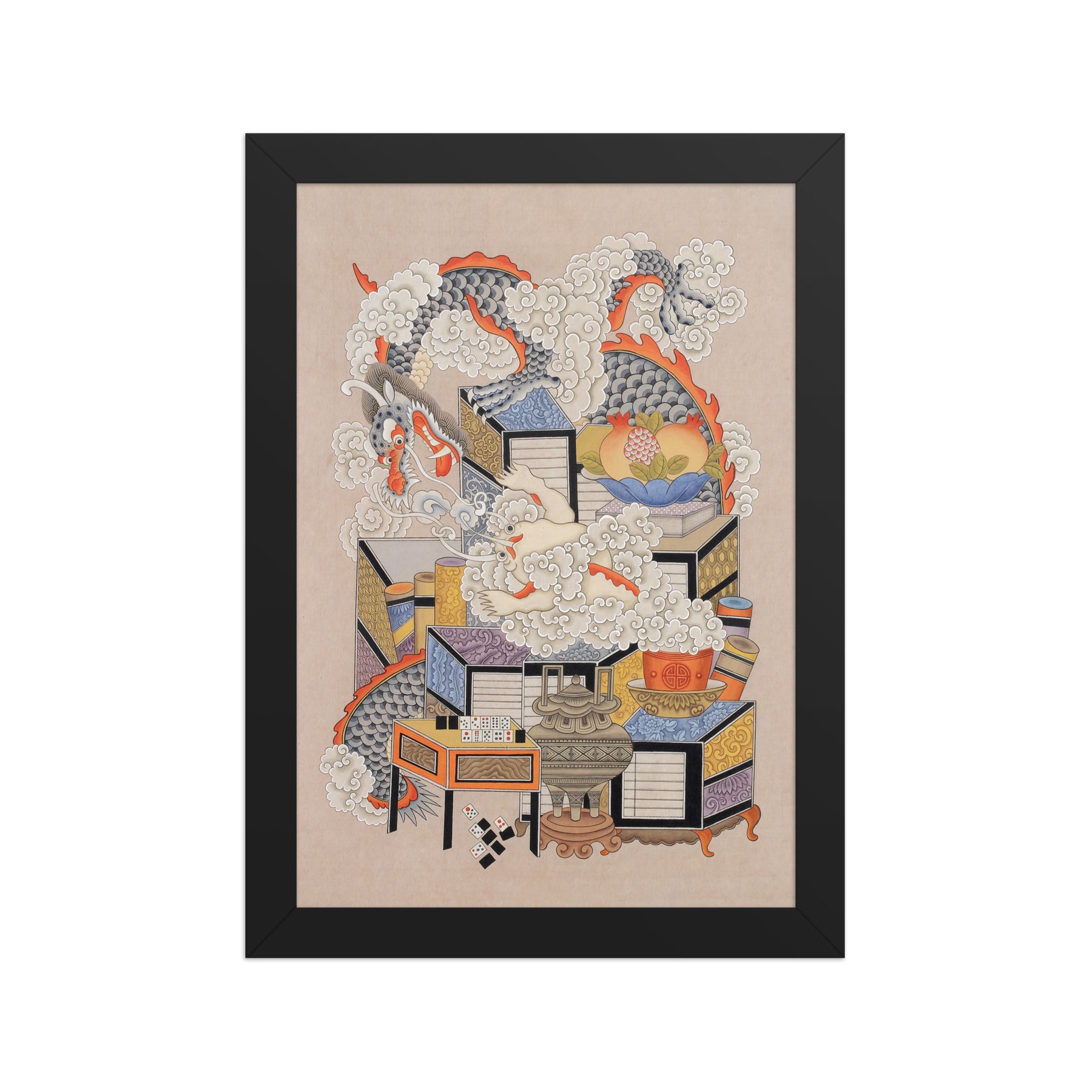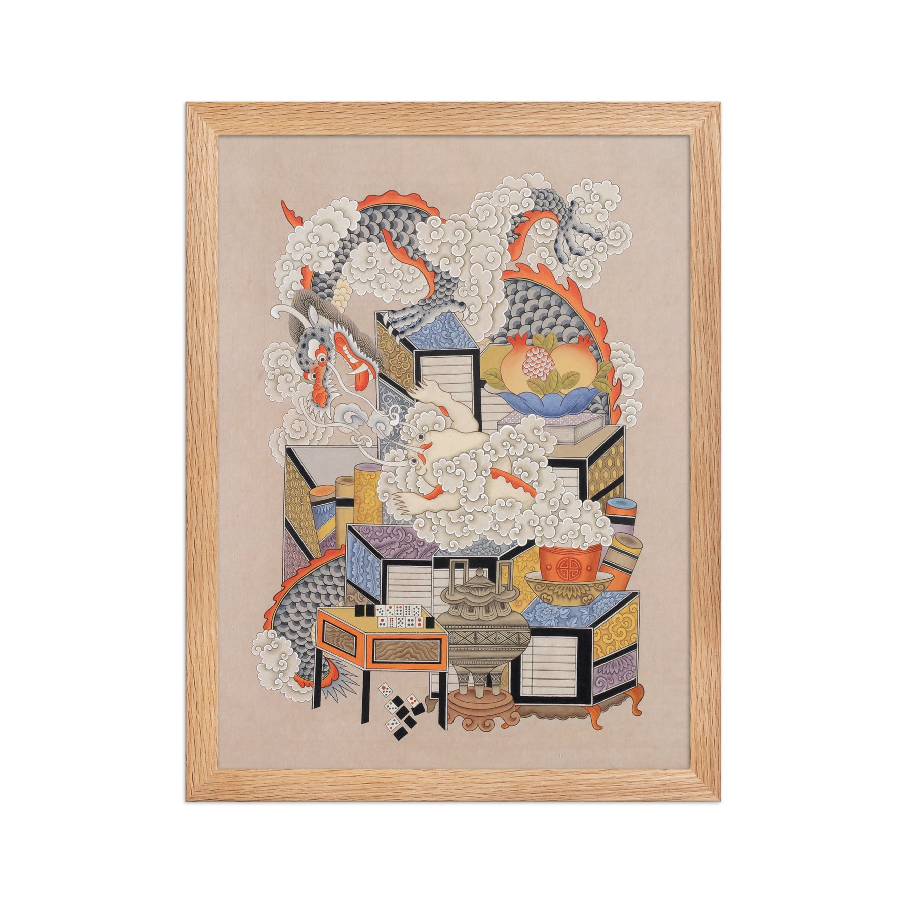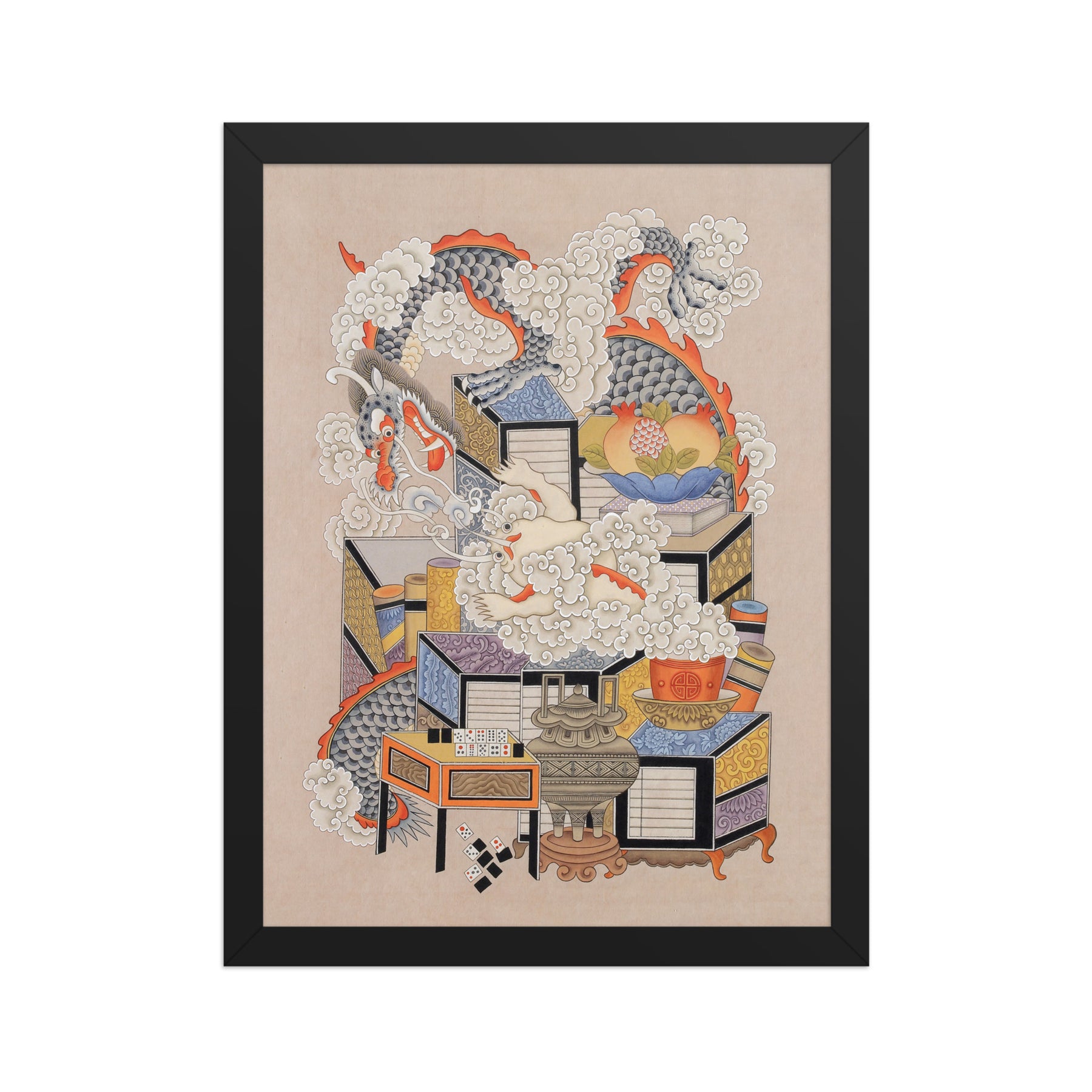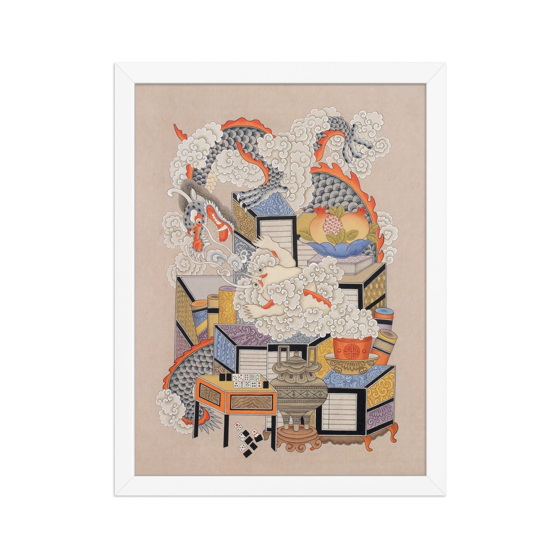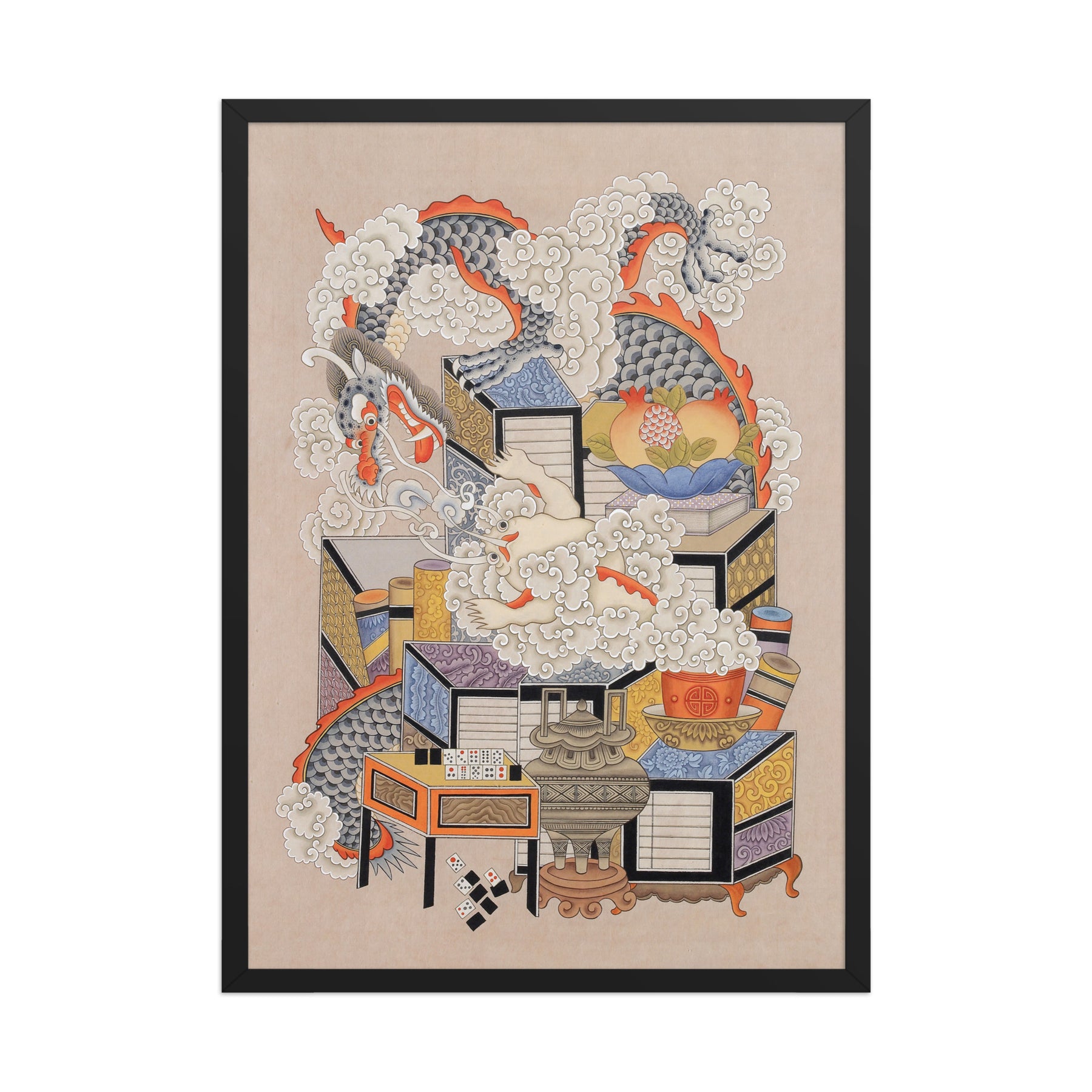 Met dit ingelijste poster - Verlangen naar kennis met draak van Seungmin Yoon zet je in elke ruimte een opvallend statement. Gedrukt op hoogwaardig, dik, mat papier.