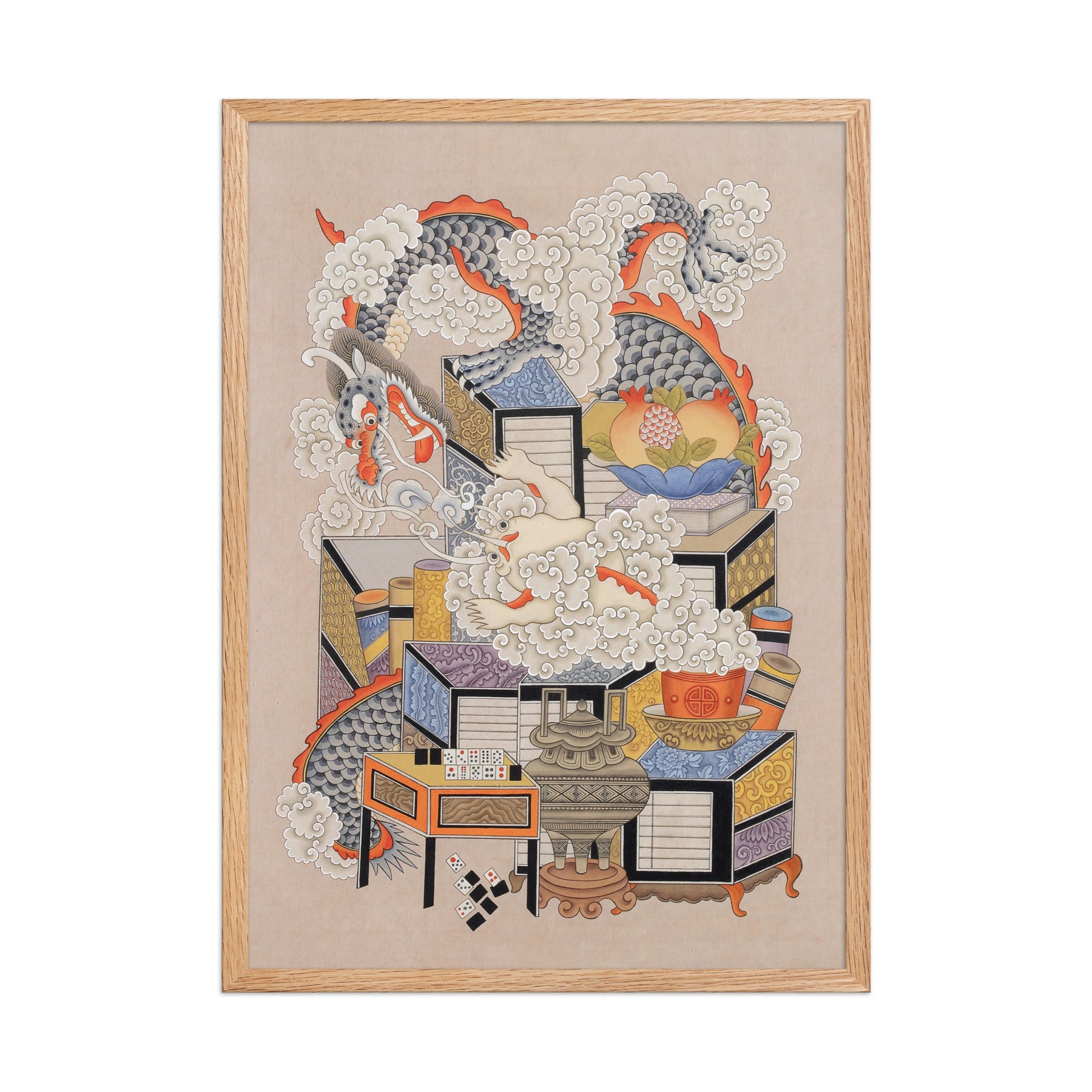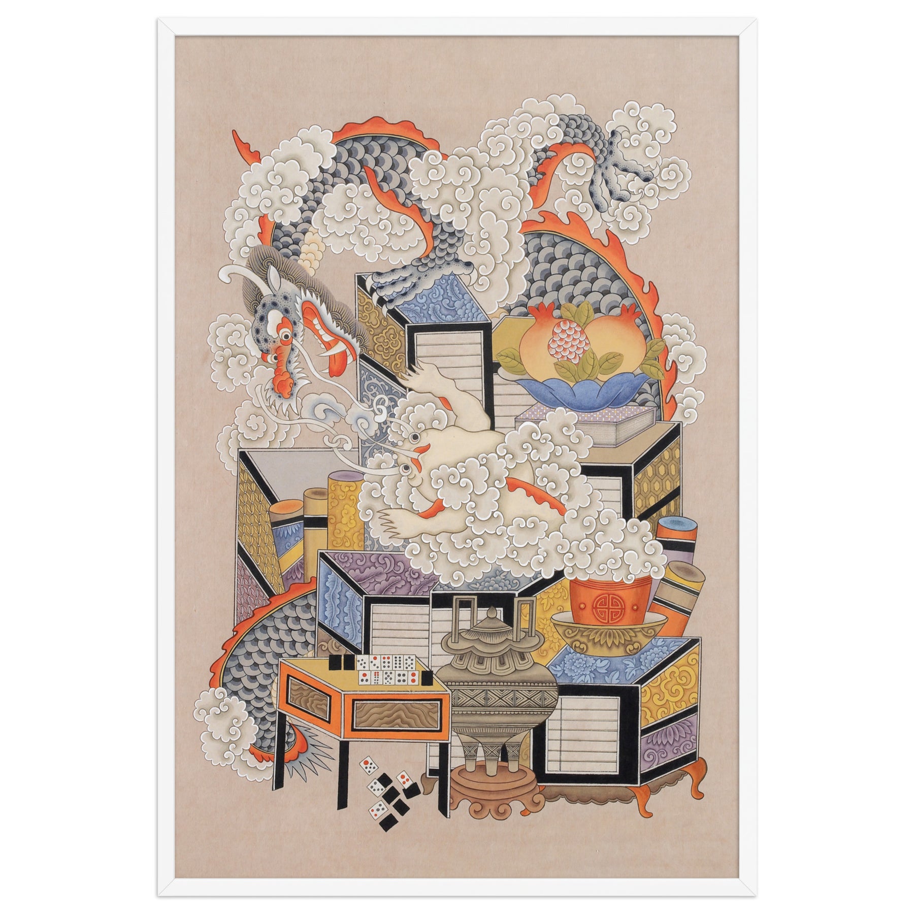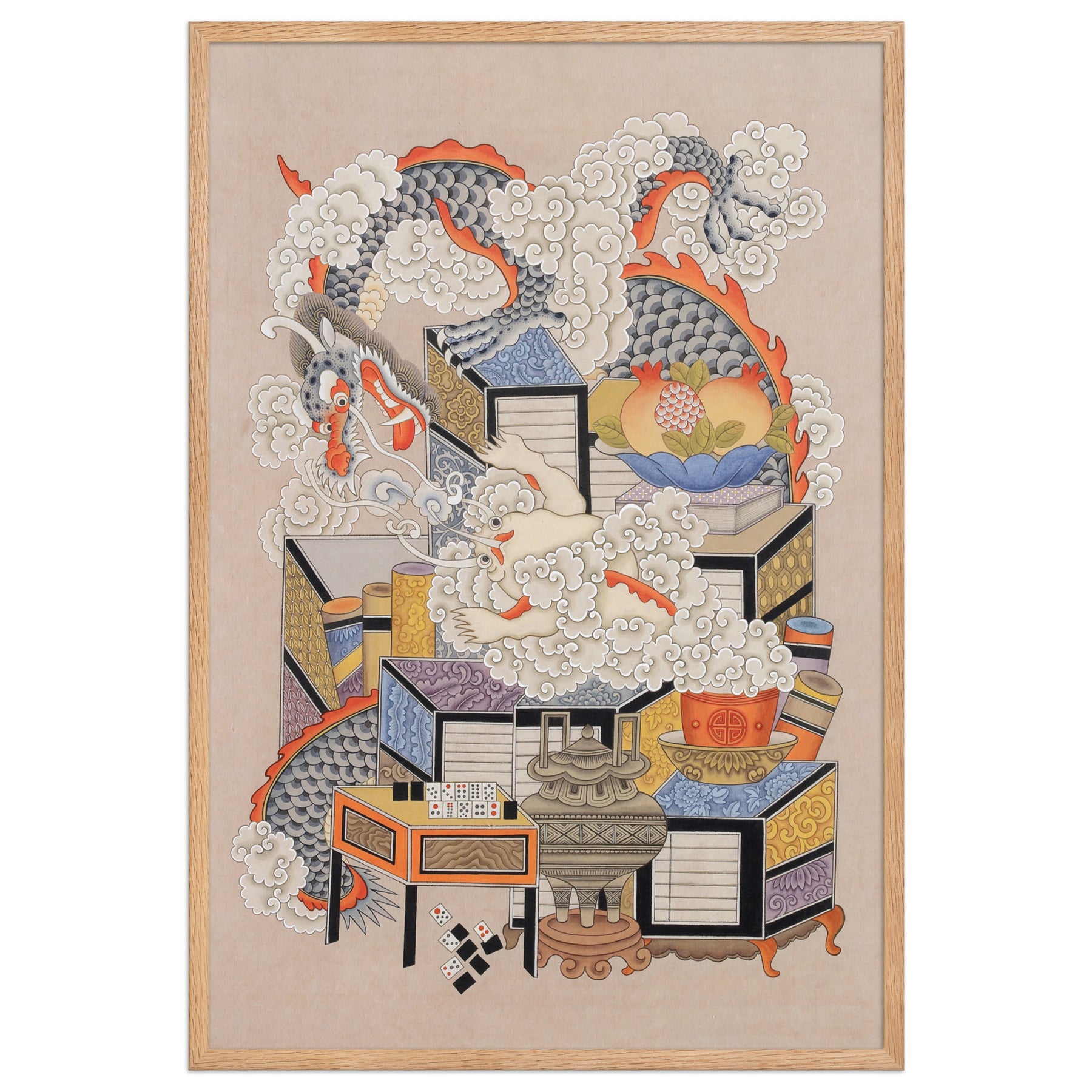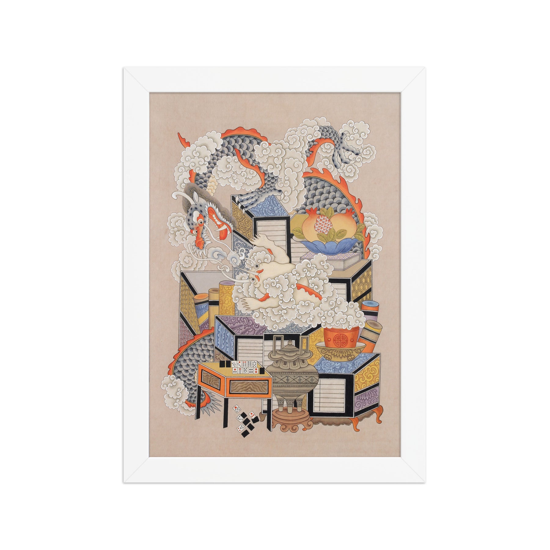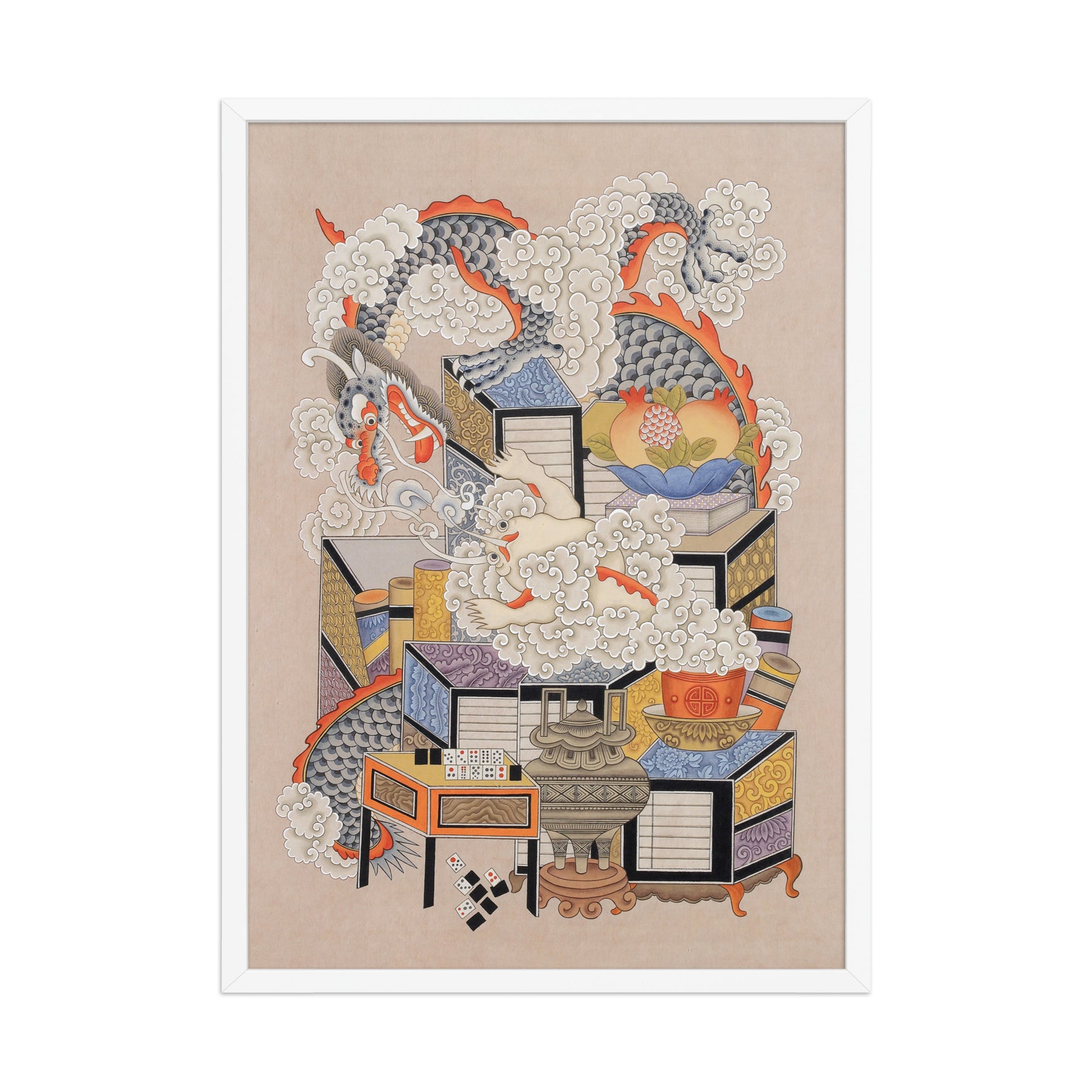 Met dit ingelijste poster - Verlangen naar kennis met draak van Seungmin Yoon zet je in elke ruimte een opvallend statement. Gedrukt op hoogwaardig, dik, mat papier.