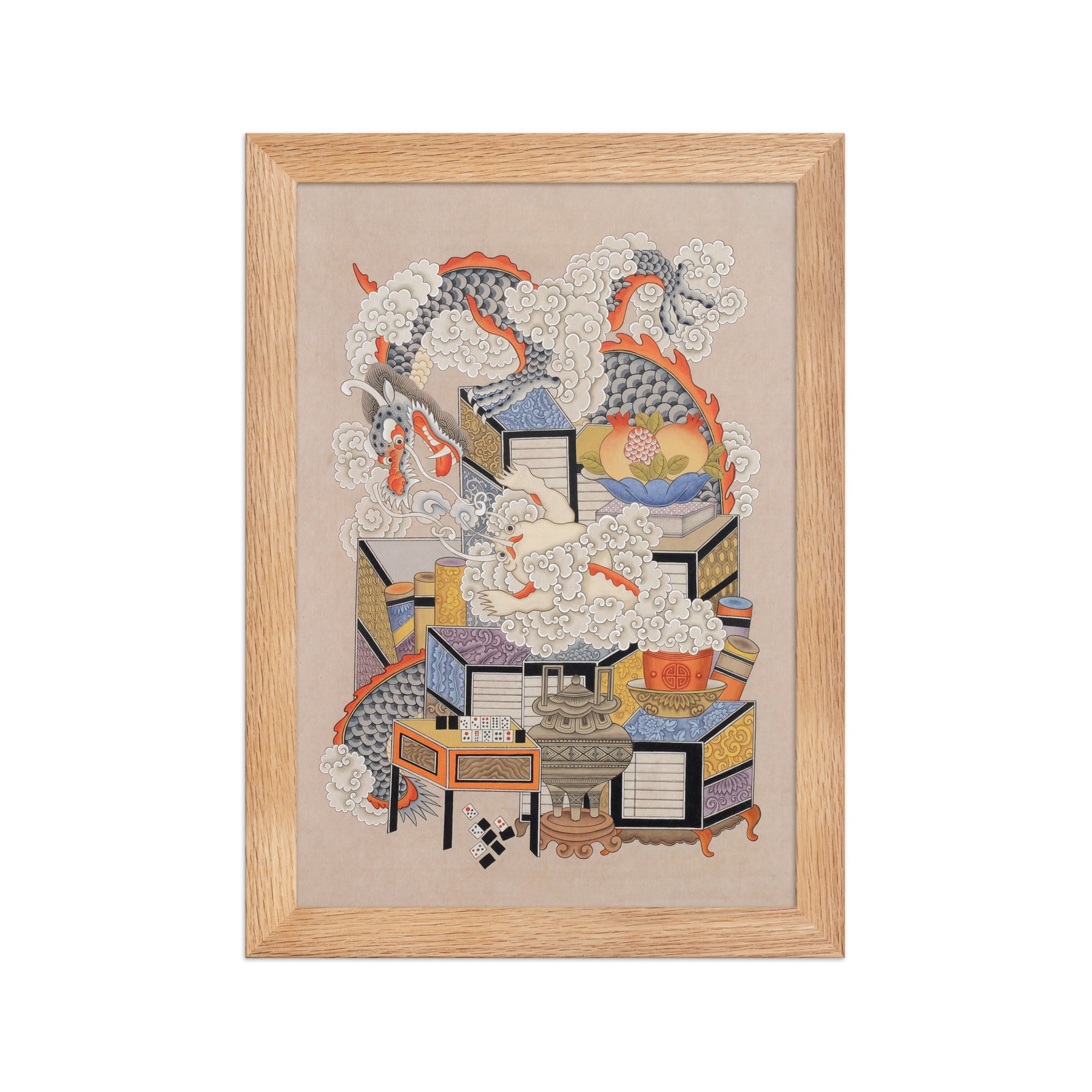 In de Koreaanse cultuur stonden boeken niet alleen voor onderwijs, maar ook voor zelfvervolmaking, morele houding en levensideaal. Ook mensen zonder academische achtergrond sierden hun huizen met zulke afbeeldingen – als stille belijdenis van hun eigen verlangen naar kennis.