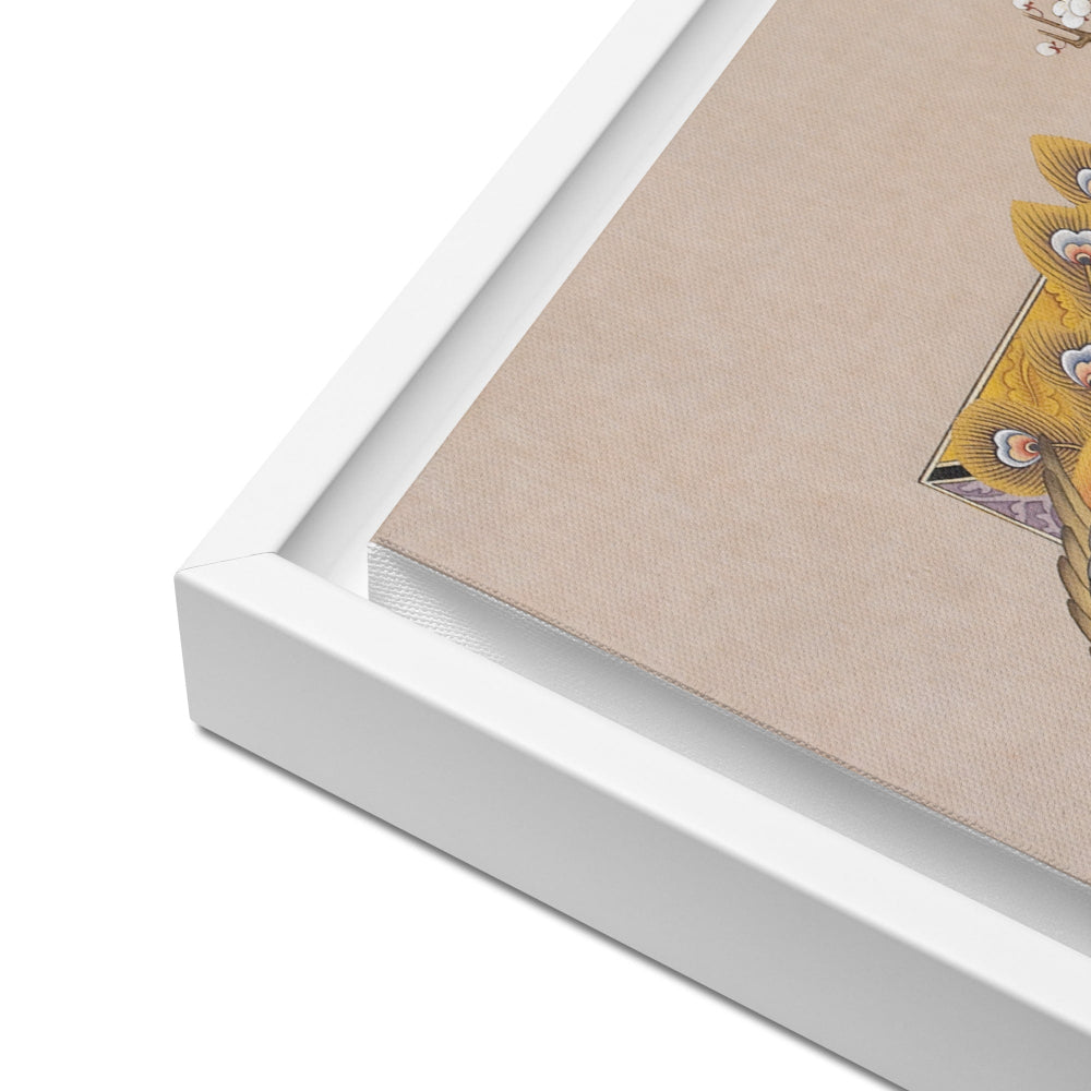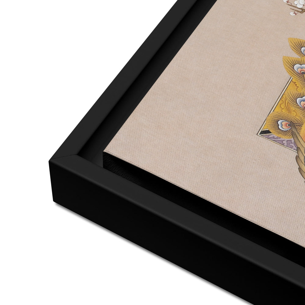 Die gerahmte Leinwand aus Kiefernholz hat Gummipolster an den Ecken, eine vormontierte Wandhalterung und einen schwebenden Rahmen für mühelose Eleganz.