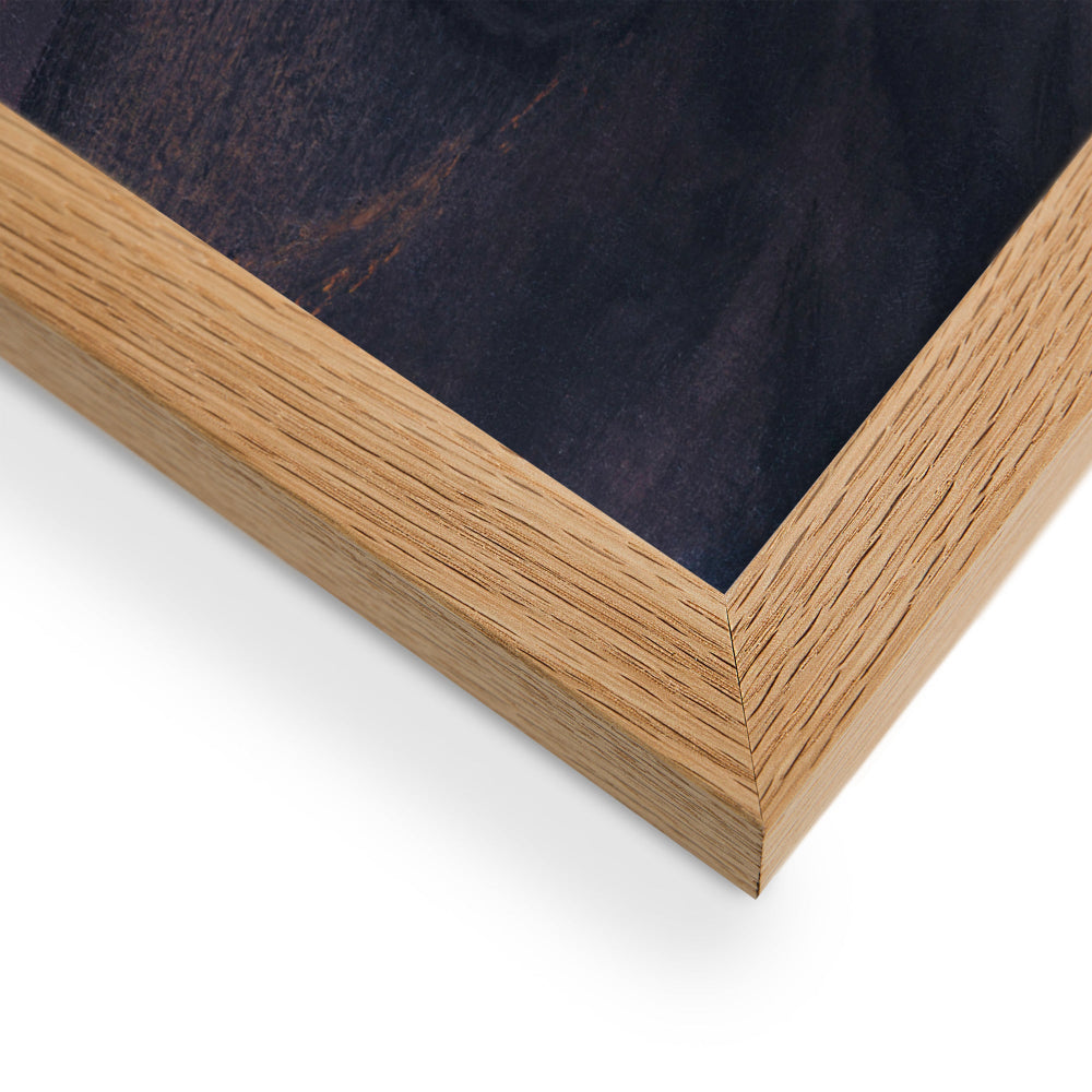 Die gerahmte Leinwand aus Kiefernholz hat Gummipolster an den Ecken, eine vormontierte Wandhalterung und einen schwebenden Rahmen für mühelose Eleganz.