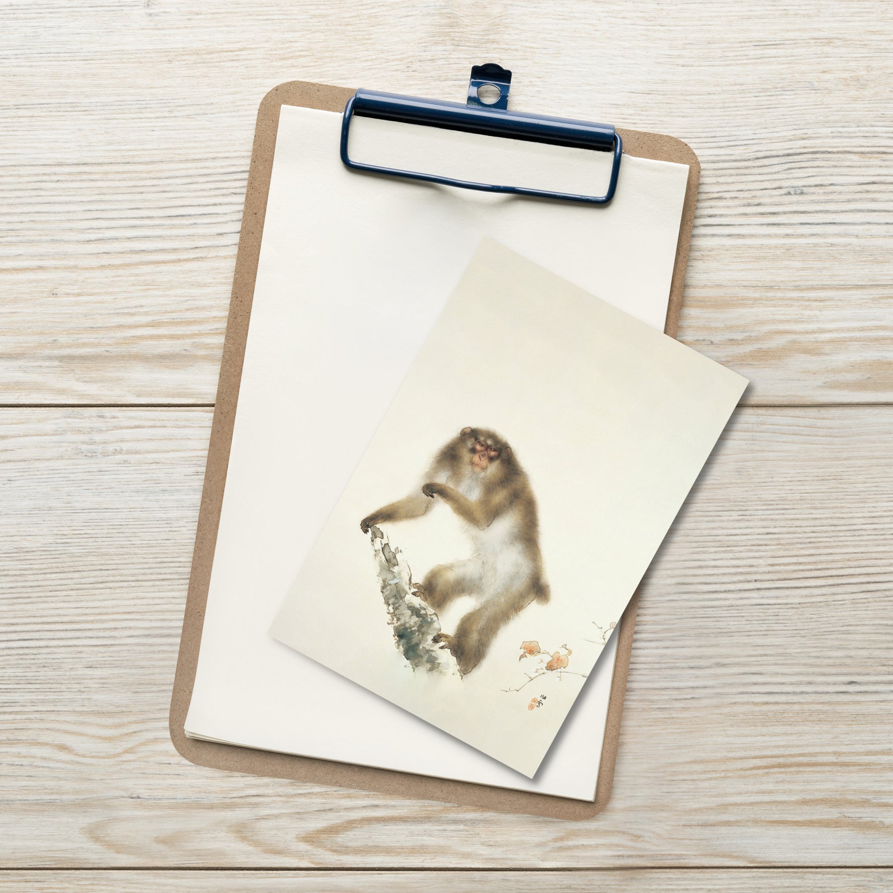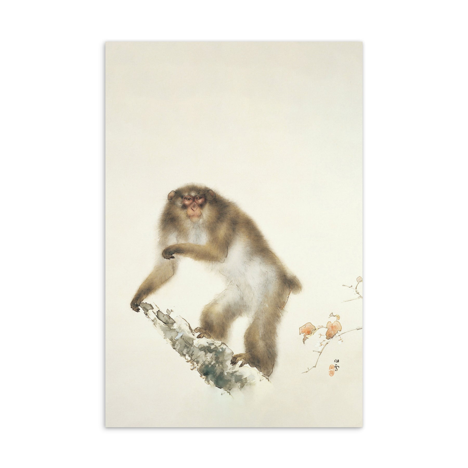 Postkarte - Hashimoto Kansetsu, Alter Affe mit Kirsche im Herbst