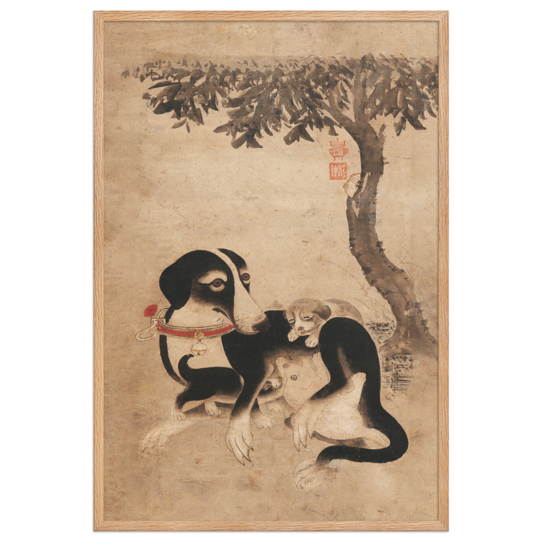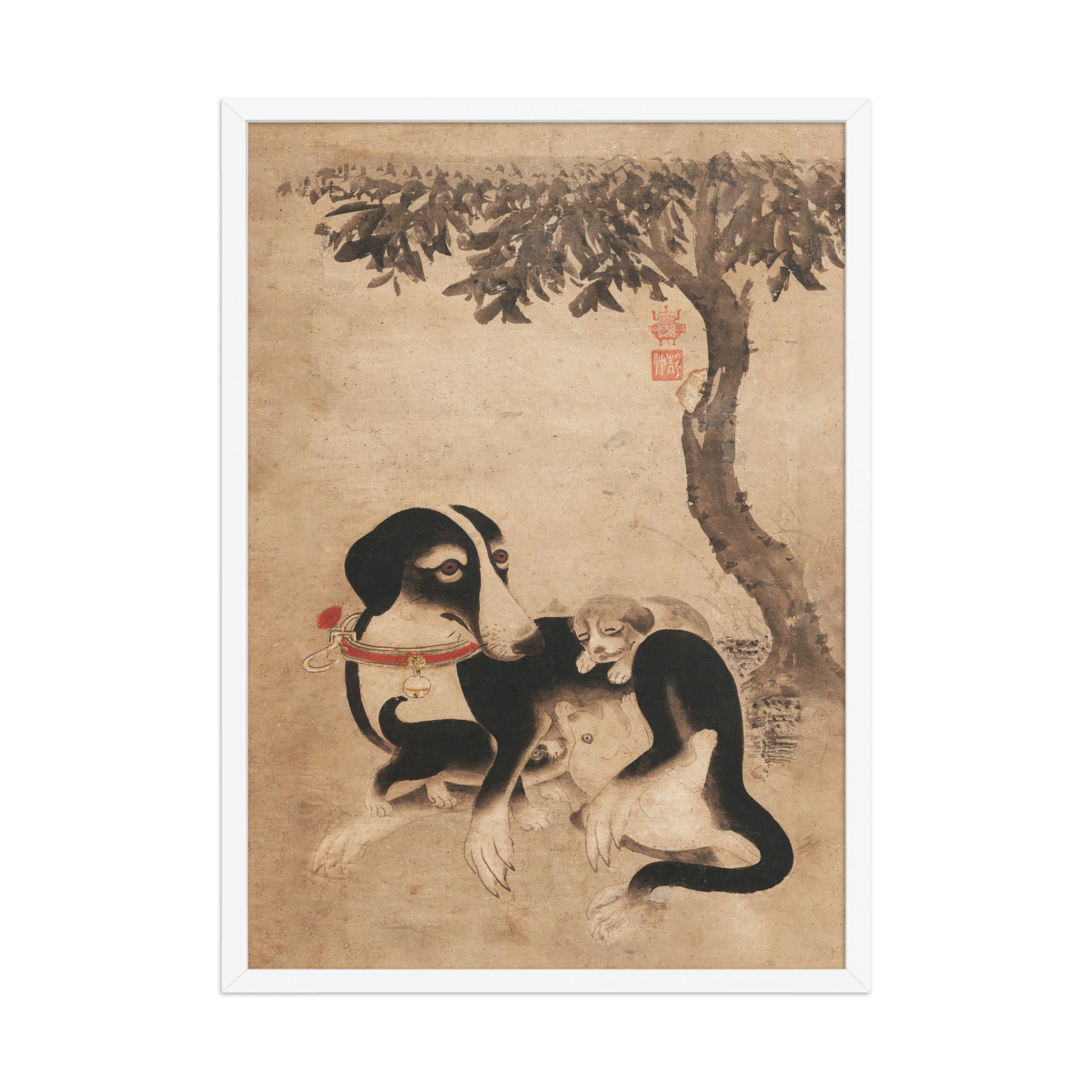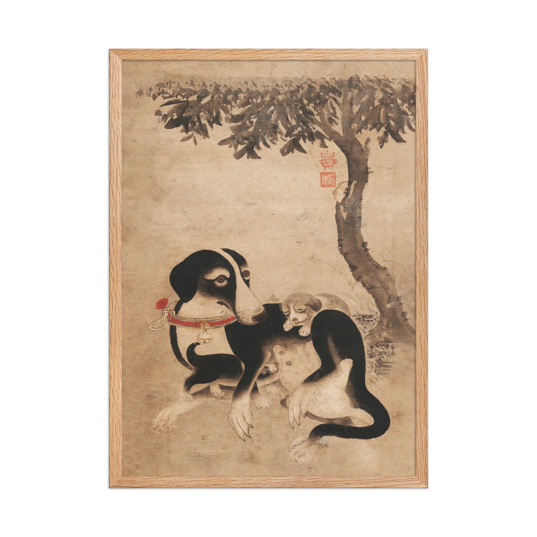 Das Gemälde „Hundemutter mit Welpen“ stammt vom koreanischen Künstler Yi Am (이암, 1499–?) und gehört zu den bekannten Tierdarstellungen der Joseon-Dynastie. Yi Am, ein Nachkomme der königlichen Familie, war für seine außergewöhnlich natürlichen und lebendigen Tierbilder berühmt. In historischen Quellen wird erwähnt, dass er sogar als Kandidat für das königliche Porträt von König Jungjong vorgeschlagen wurde – ein Hinweis auf seine hohe Wertschätzung am Hof.