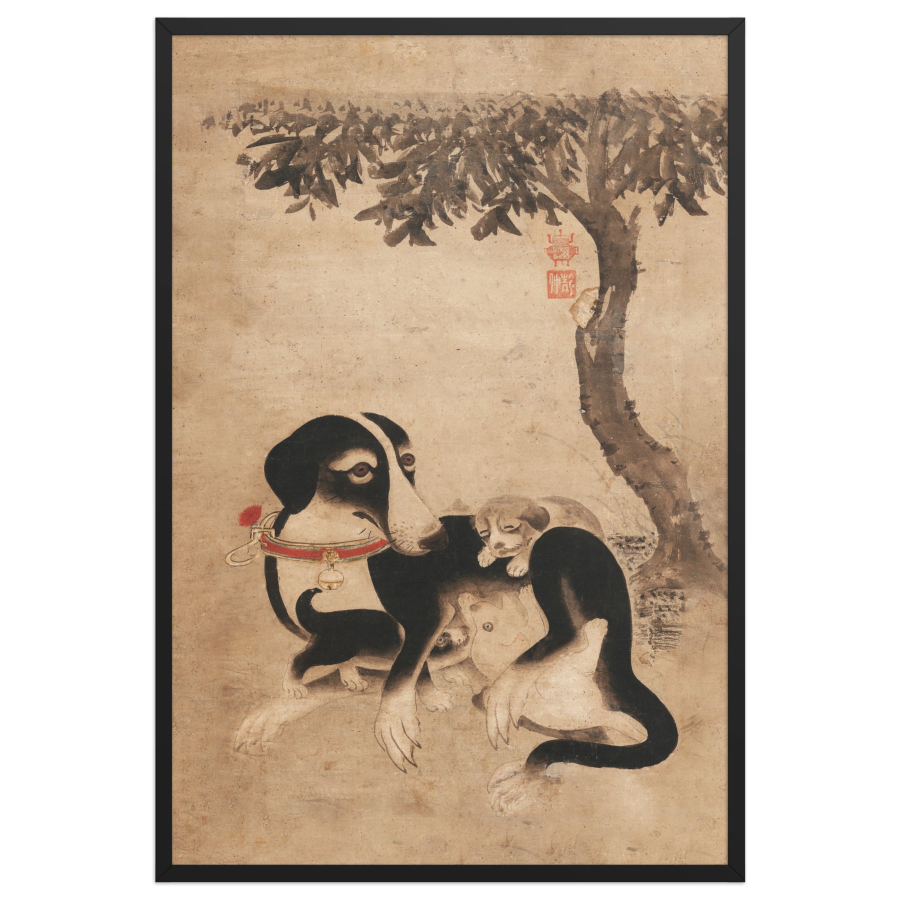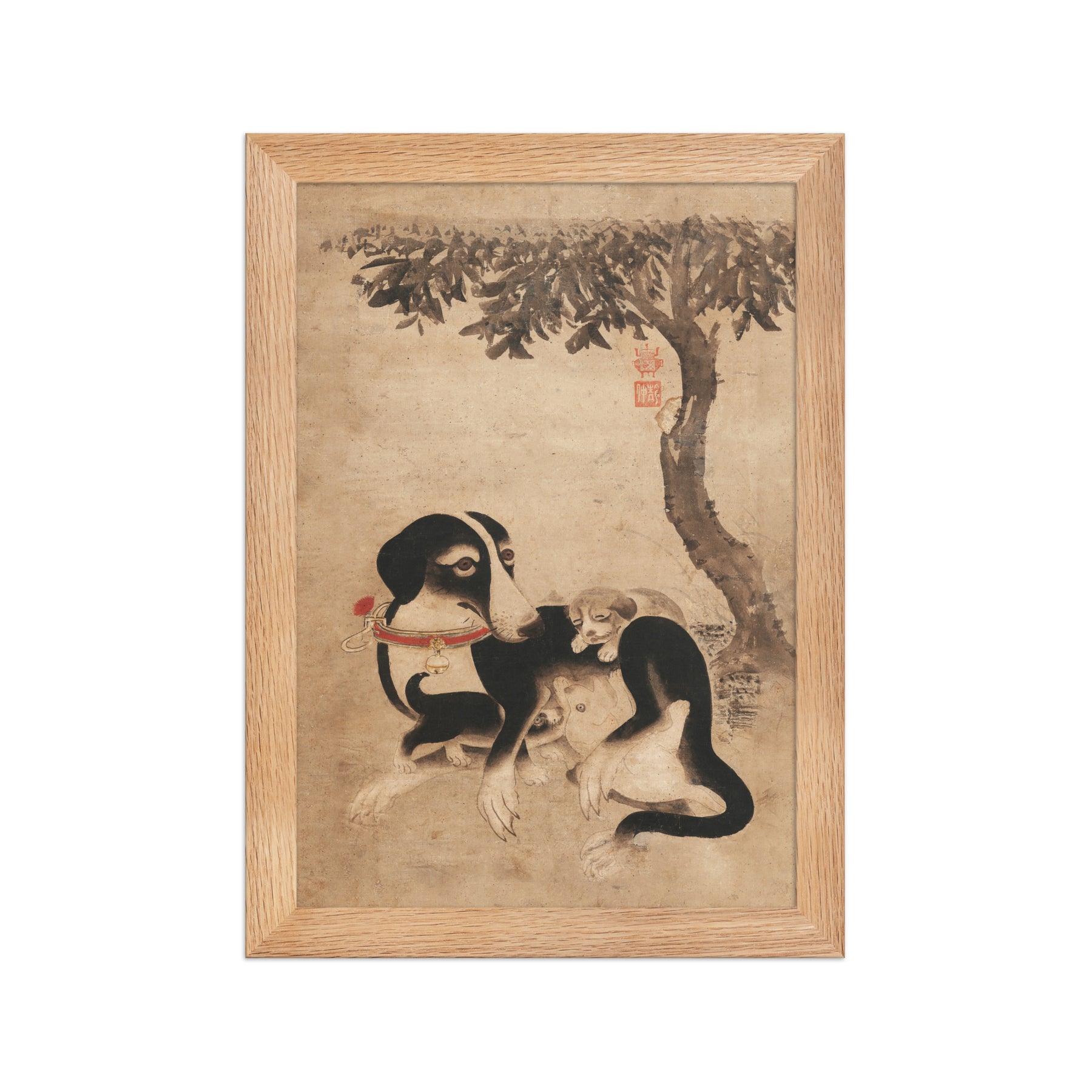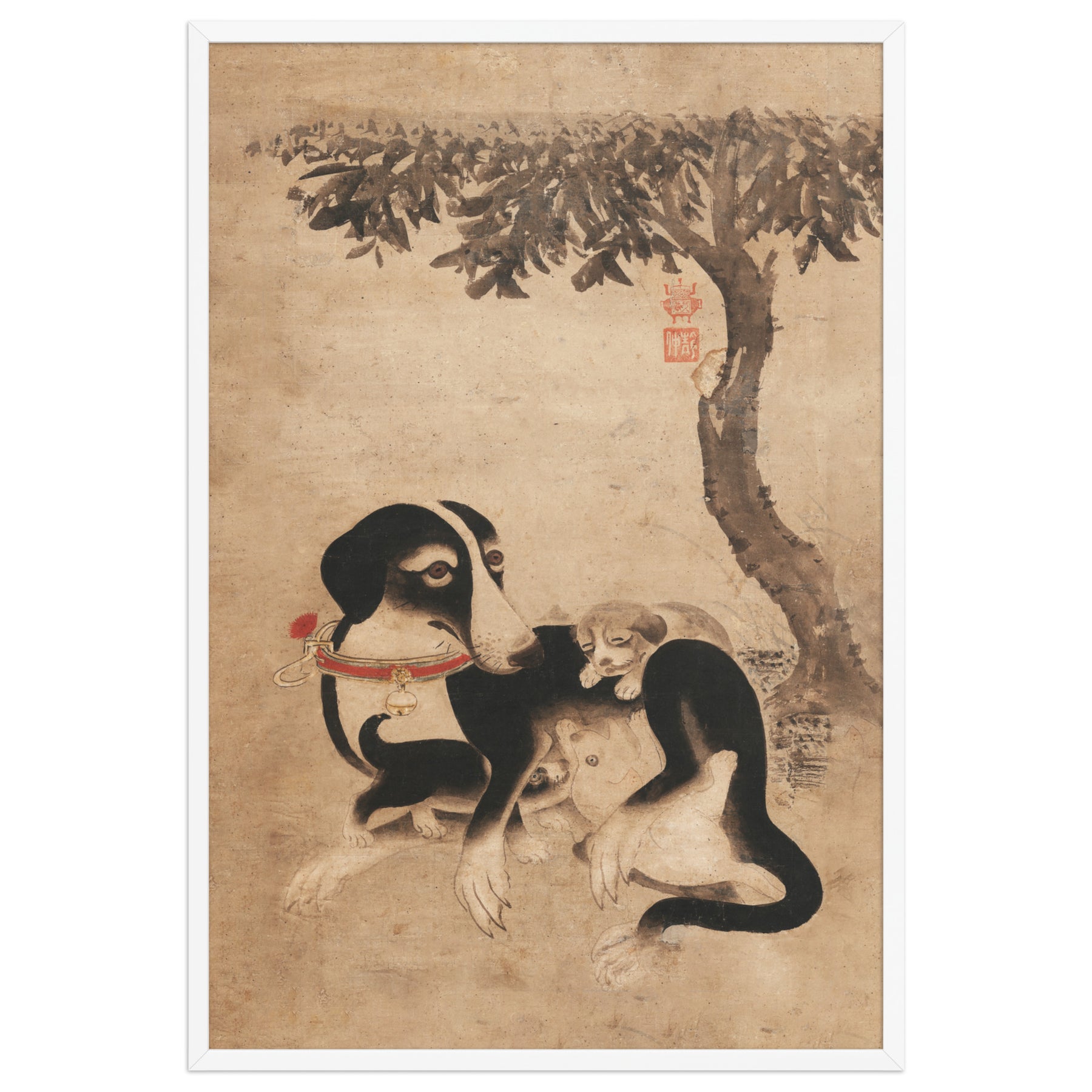 Das Gemälde „Hundemutter mit Welpen“ stammt vom koreanischen Künstler Yi Am (이암, 1499–?) und gehört zu den bekannten Tierdarstellungen der Joseon-Dynastie. Yi Am, ein Nachkomme der königlichen Familie, war für seine außergewöhnlich natürlichen und lebendigen Tierbilder berühmt. In historischen Quellen wird erwähnt, dass er sogar als Kandidat für das königliche Porträt von König Jungjong vorgeschlagen wurde – ein Hinweis auf seine hohe Wertschätzung am Hof.