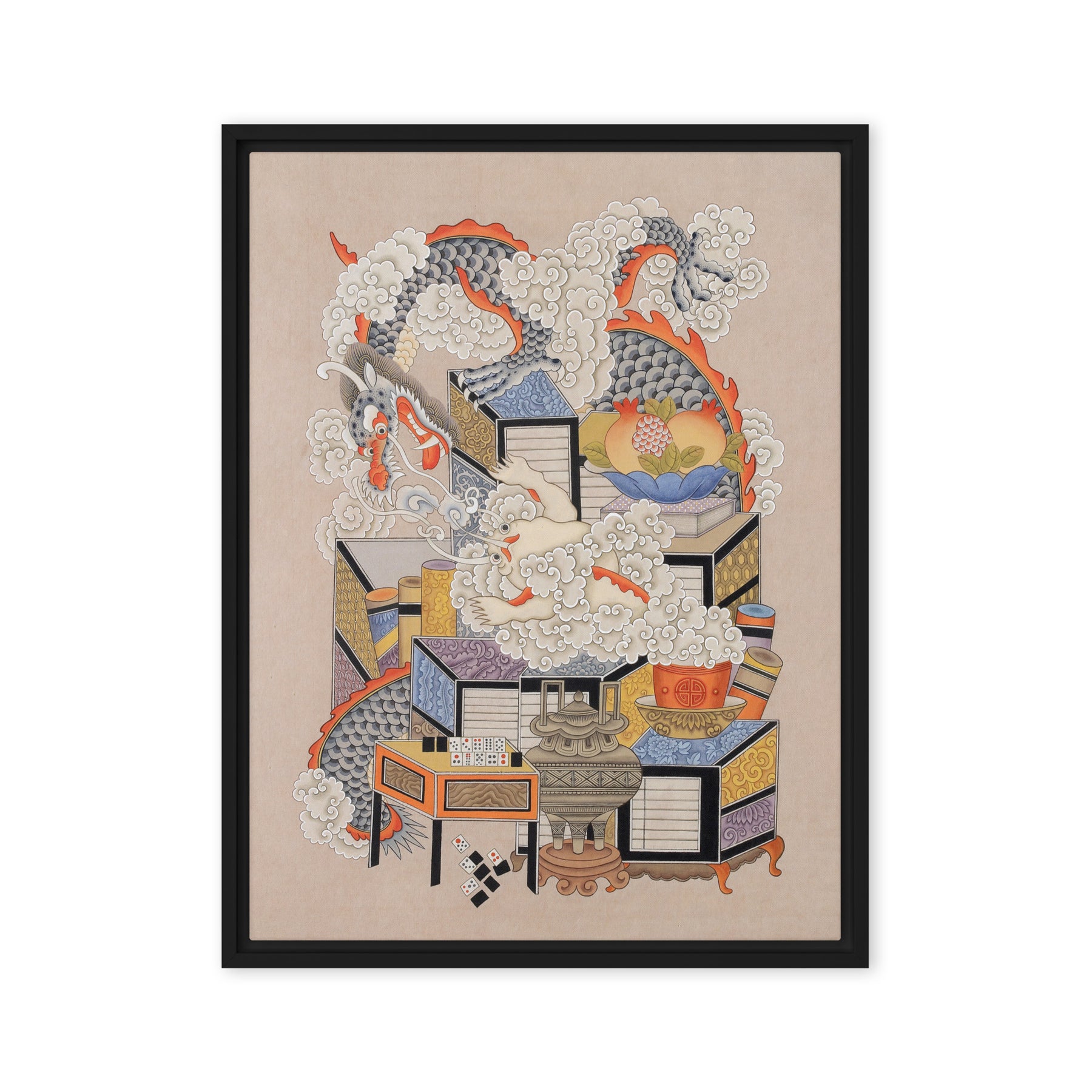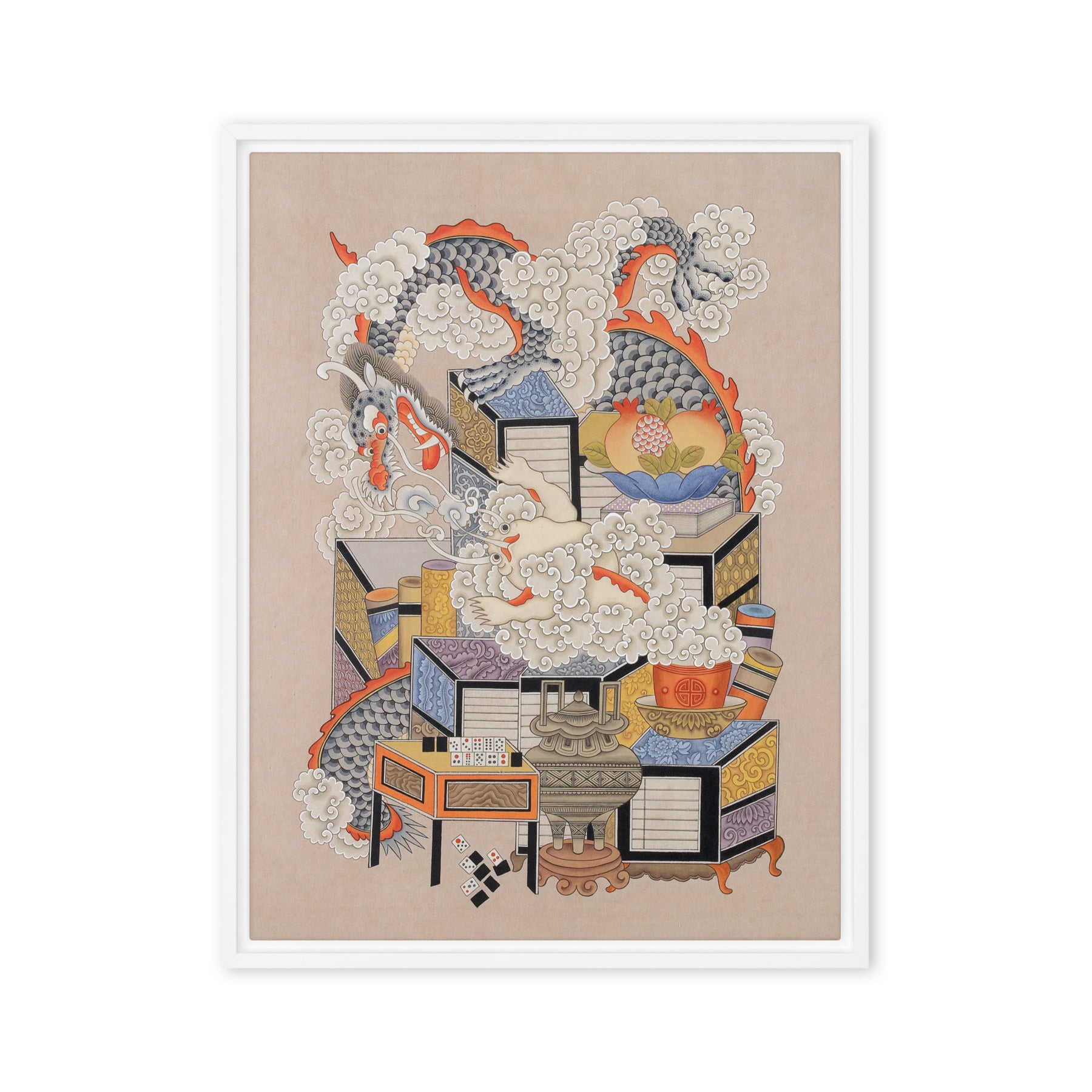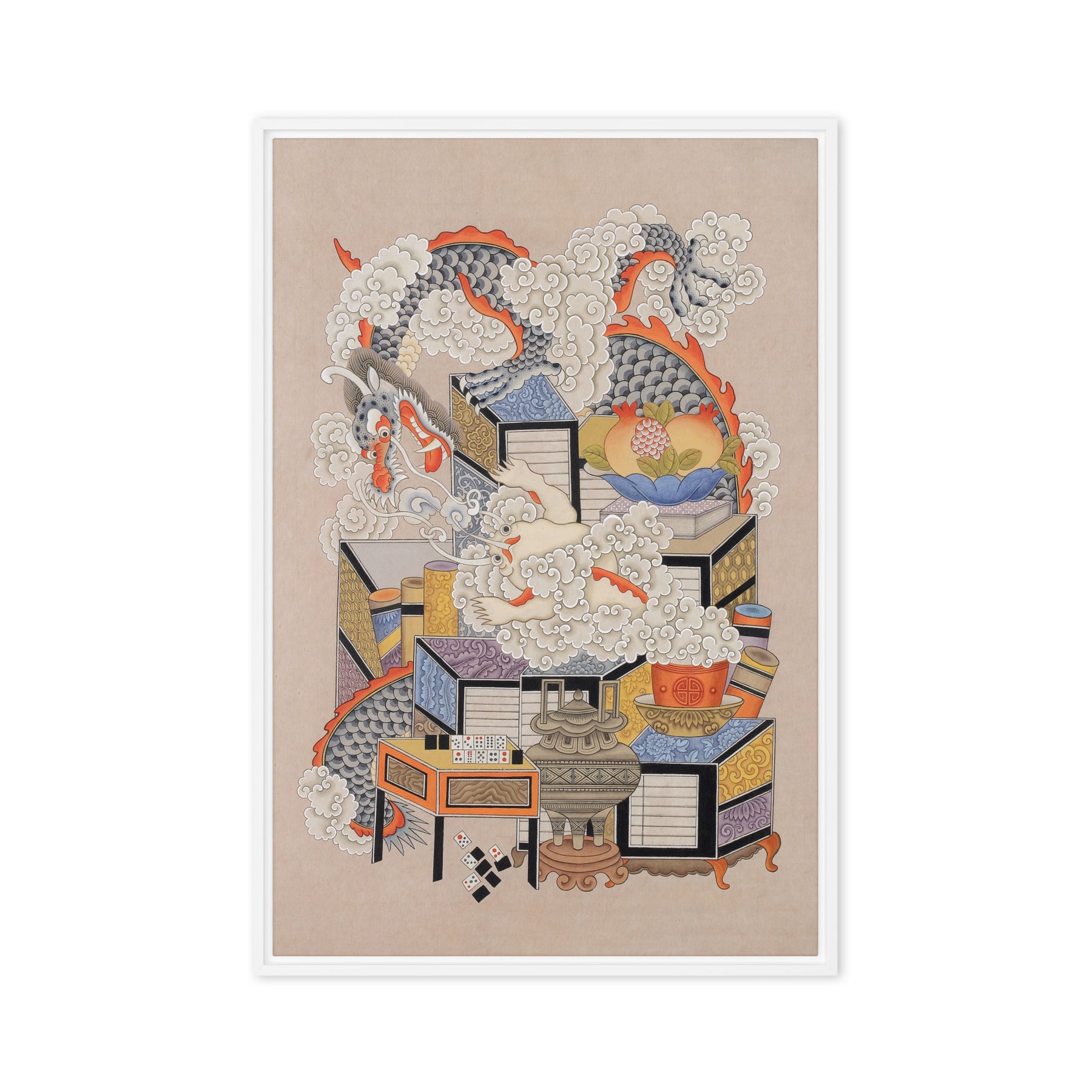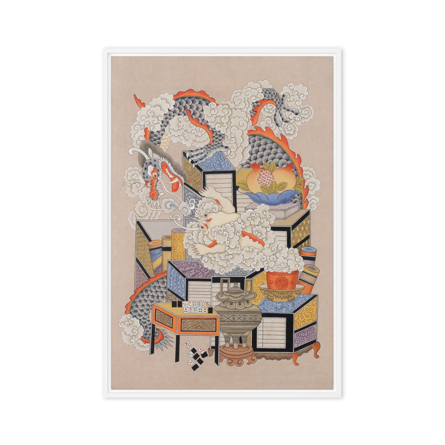 Het ingelijste grenen canvas heeft rubberen kussentjes op de hoeken, een vooraf bevestigde muurbevestiging en een zwevend frame voor moeiteloze elegantie.