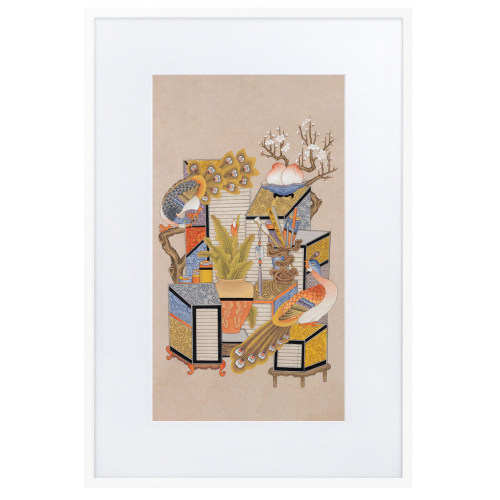 Poster Passepartout - Sehnsucht nach Wissen mit Pfau