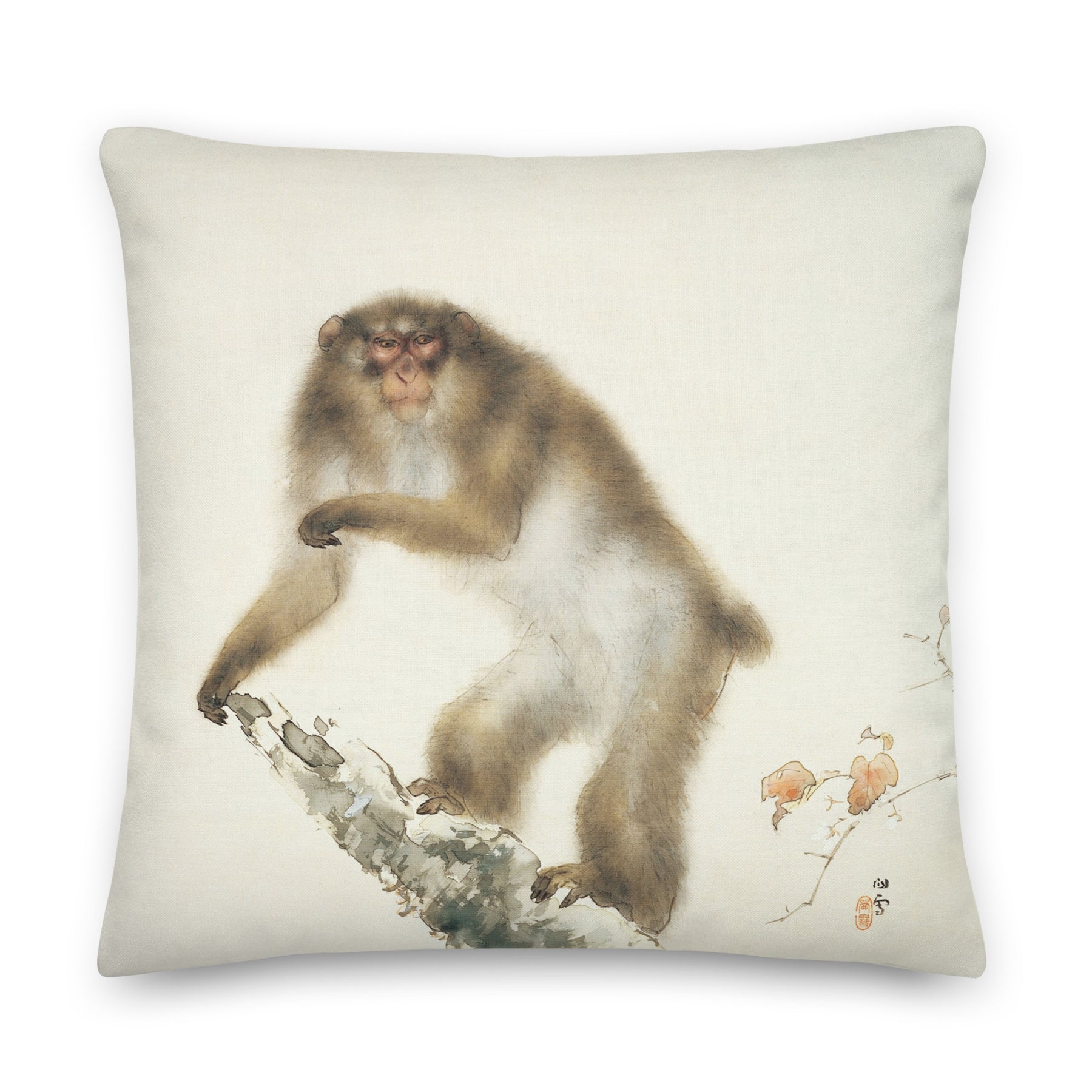Premium-kussen - Hashimoto Kansetsu, Oude Aap met Kers in de Herfst